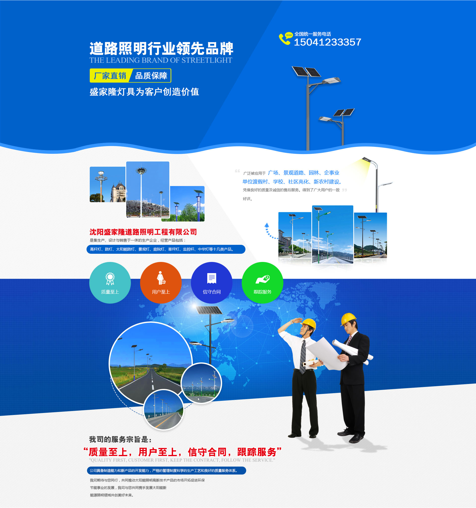 沈陽(yáng)盛家隆道路照明工程有限公司坐落于沈陽(yáng)市于洪區(qū)興盛村愛(ài)國(guó),生產(chǎn)各種室外,道路,廣場(chǎng),車站,碼頭,橋梁,庭院及室內(nèi)工礦照明燈具,品種有太陽(yáng)能路燈,道路燈,LED路燈,組合燈,景觀燈,庭院燈,草坪燈,彩色泛光燈,中高桿燈以及配套使用的各種路燈頭,鎮(zhèn)流器,觸發(fā)器開關(guān)箱等系列產(chǎn)品。